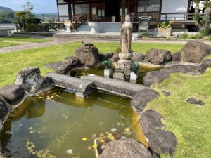 真ん中のほうには池とお地蔵様があり、足元には賽銭が。