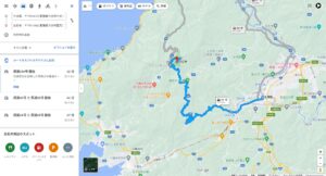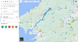 香川県からだと回りこむので一番遠いルートですが、クネクネ道で家族が酔うのがつらいのでルート③で行くことに。