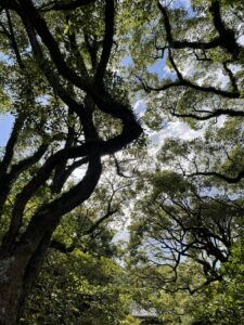 参道に入ると、この日は風が強く木々が揺れ、葉っぱの隙間から差し込む太陽の日差しで、キラキラの光が参道を照らしておりました。